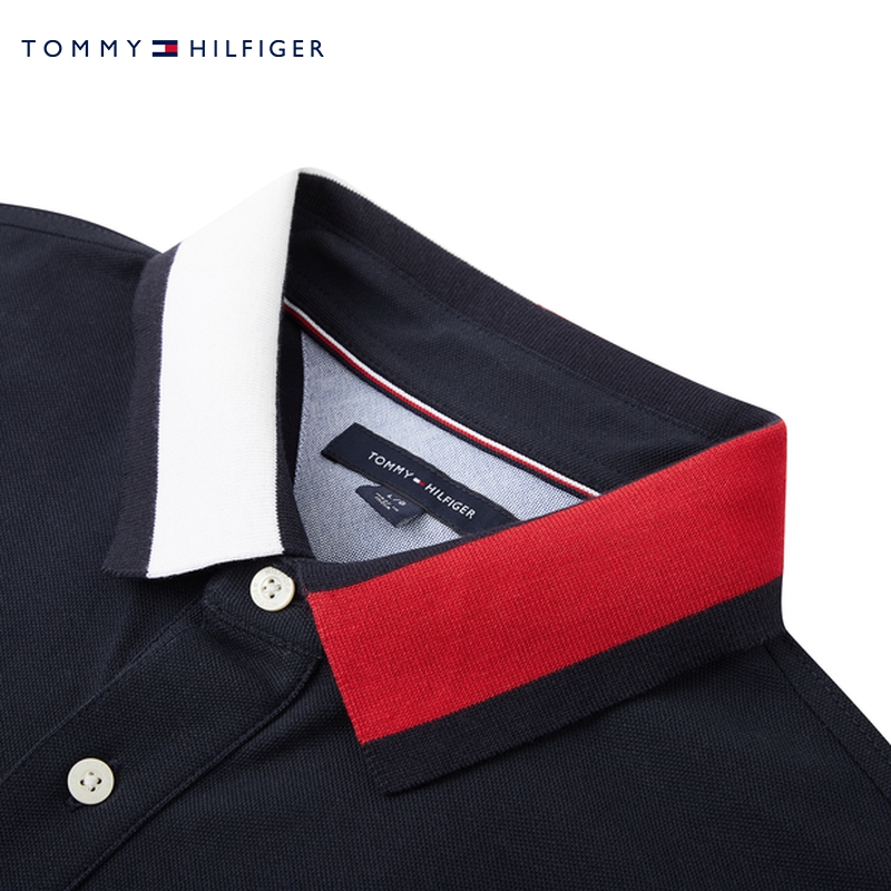 Tommy spring and summer men's fashion pure cotton breathable small embroidered color matching lapel short-sleeved POLO shirt 08578E7207