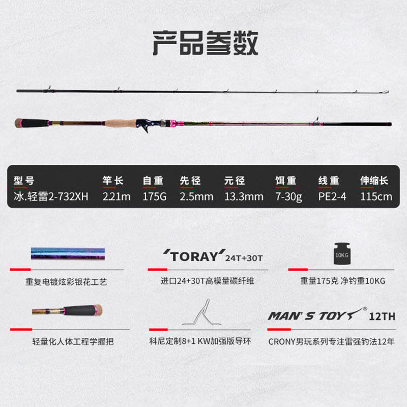 Luya hits black thunder strong rod Kony male play second generation ice light thunder new black fish special killing giant rod XH tune super hard rod