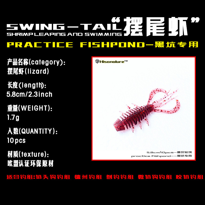 Kuno Hisanolure swinging tail dancing shrimp-type soft bait soft worm black pit mandarin perch Lua bait down fishing Ned