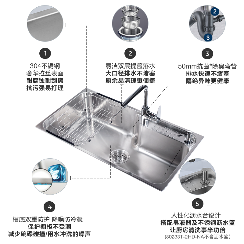 Colelio multi size optional stainless steel large single slot table under basin faucet package 80230