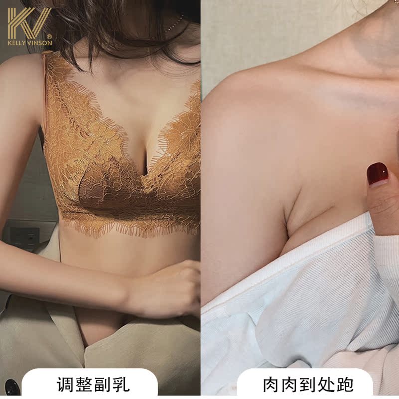Large size underwear women's summer thin section big breasts show small ultra-thin gather the pair of breasts to prevent sagging French lace sexy bra