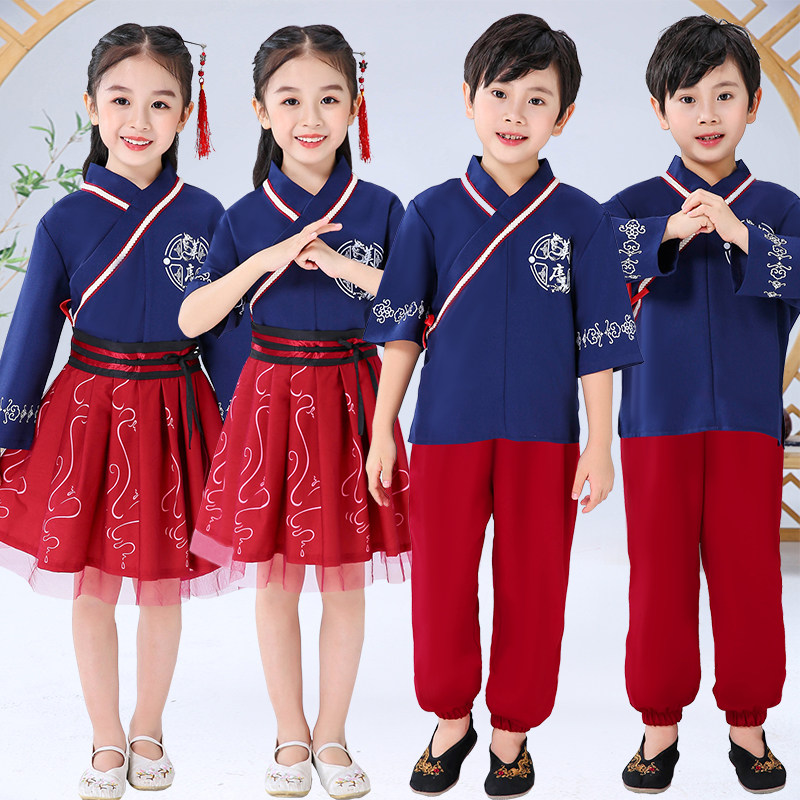 Children's ancient clothes Hanfu boy National school uniforms Chinese wind girl Three words of a book children's clothing performance recitation of a dress