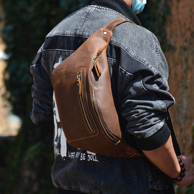 New retro old men's bag crazy horse leather big chest bag cowhide messenger bag large capacity shoulder bag genuine leather trendy bag