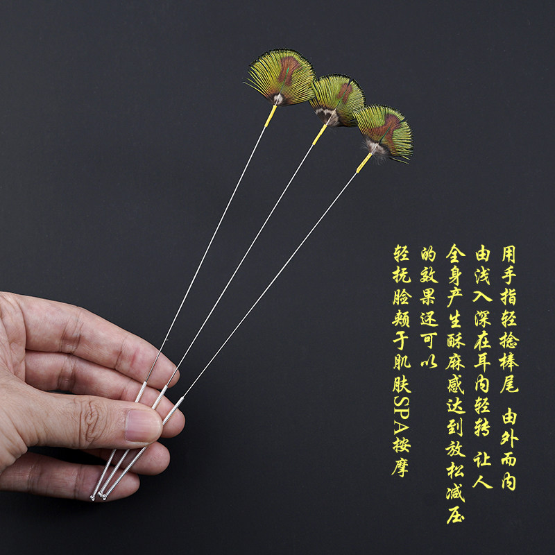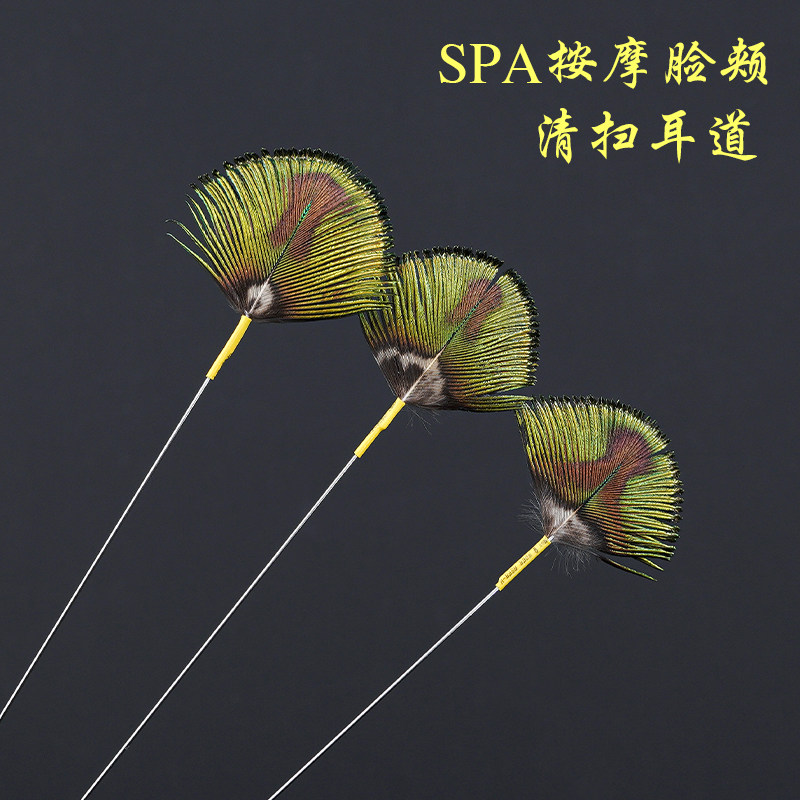 Fan-shaped peacock hair professional ear-picking tool to hit the ear hair hibiscus pestle to dig the ear spoon to dig the ear SPA massage the ear canal