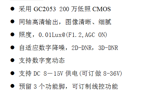 CCTV car camera 1080P small module 2MP coaxial AHD full color chip 8-15V electric FH8536H