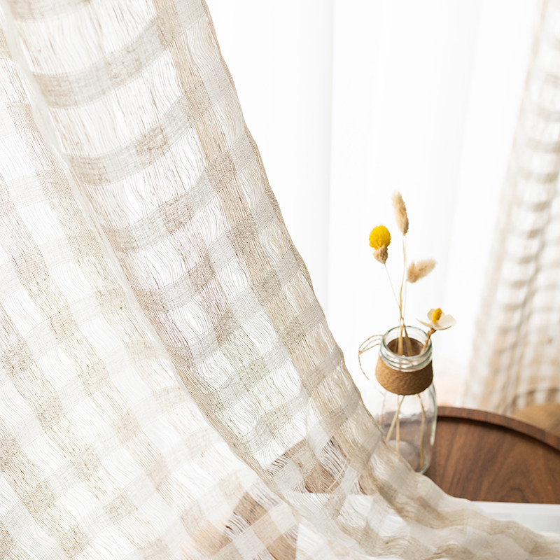 Japanese literature and art cotton and linen hollow curtains living room bedroom balcony bay window ins wind Japanese small fresh gauze curtain