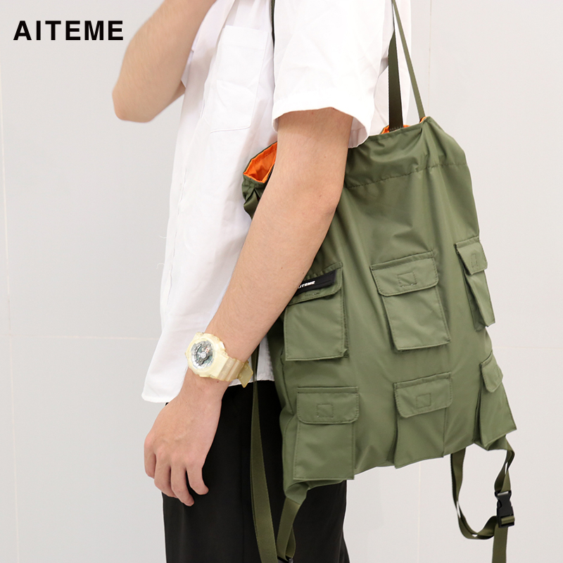 aiteme2021 neutral beam pocket draw rope single shoulder double shoulder double shoulder bag with light simple and large capacity bag wave