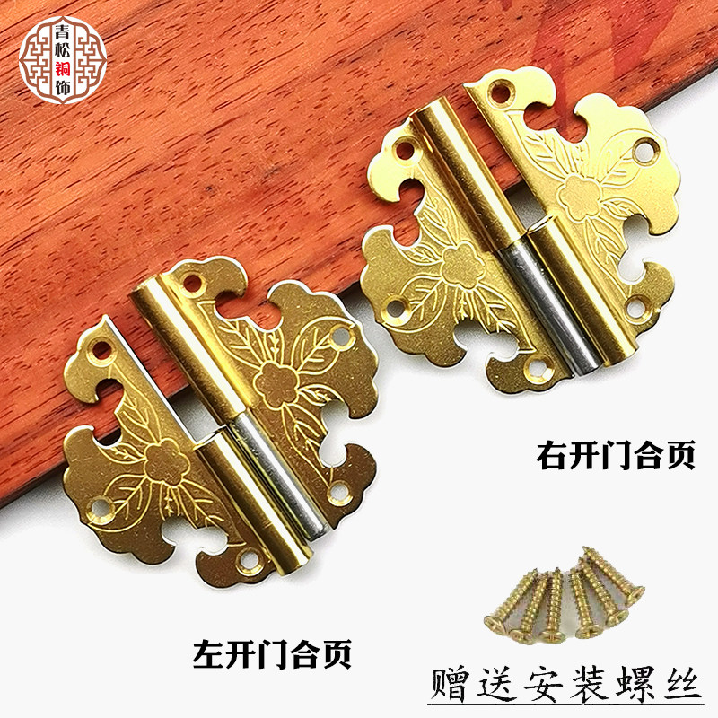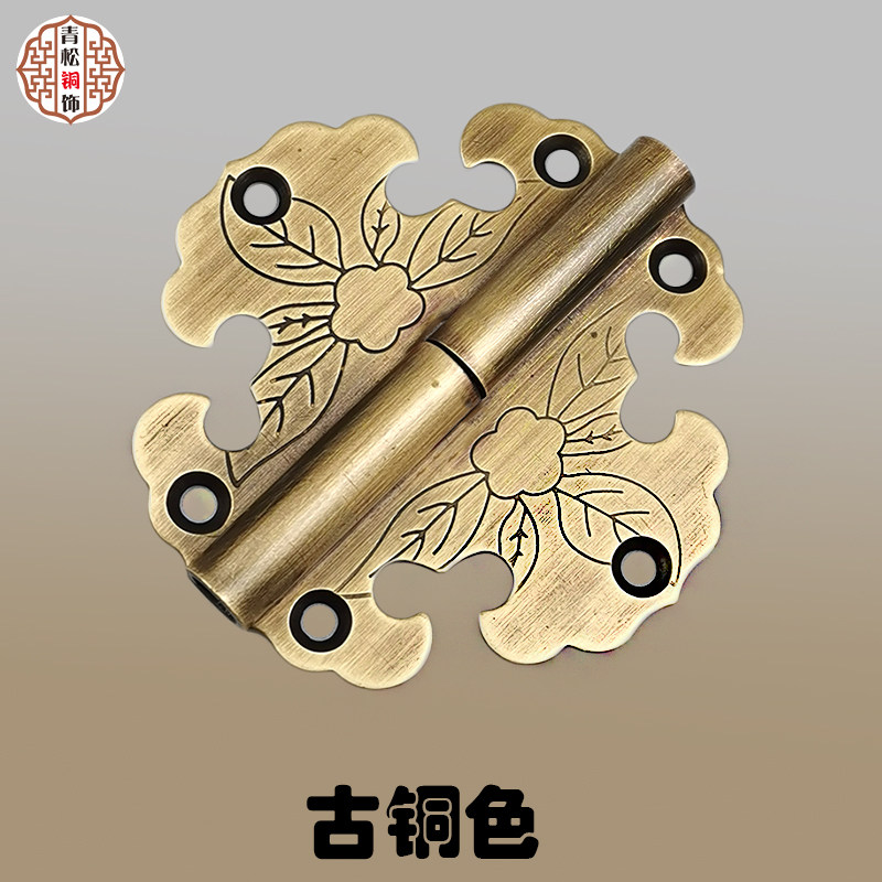 Chinese antique pure copper hinge jewelry box dismantling small hinge clothing overall cabinet door surface mounted copper hinge retro copper folding