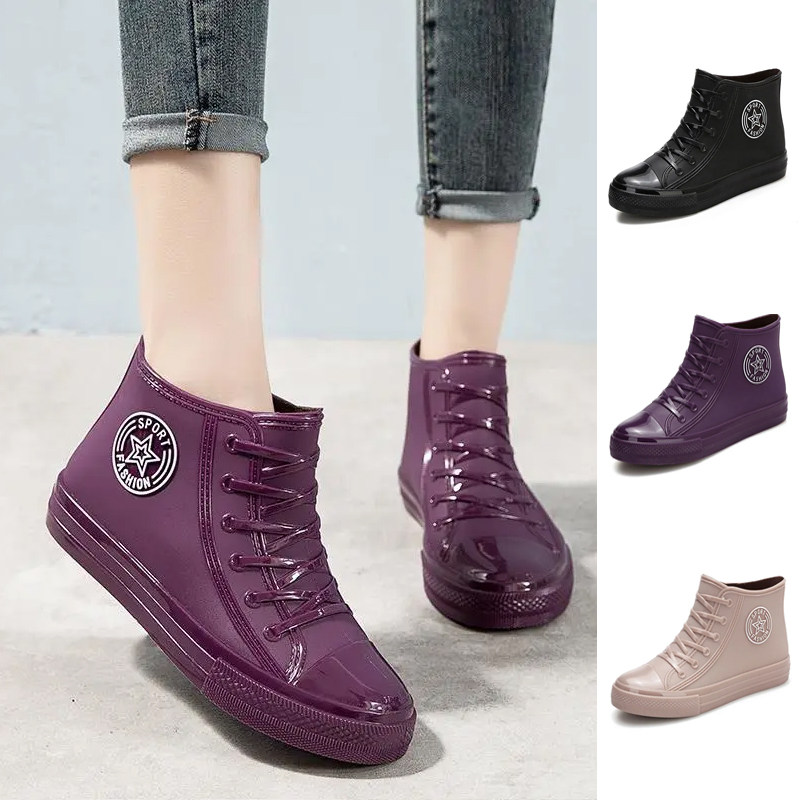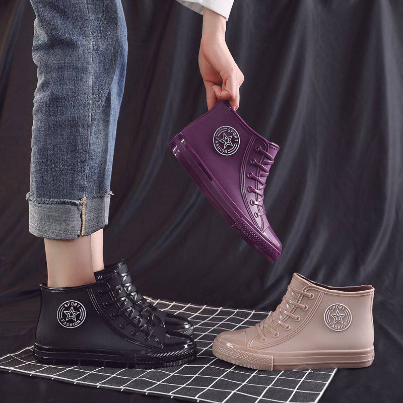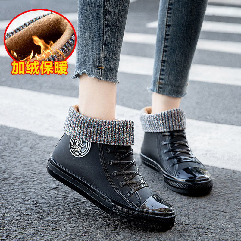 Rain boots women's fashion outside wear kitchen non-slip rain boots work lightweight rubber shoes new short tube soft bottom plus velvet waterproof shoes