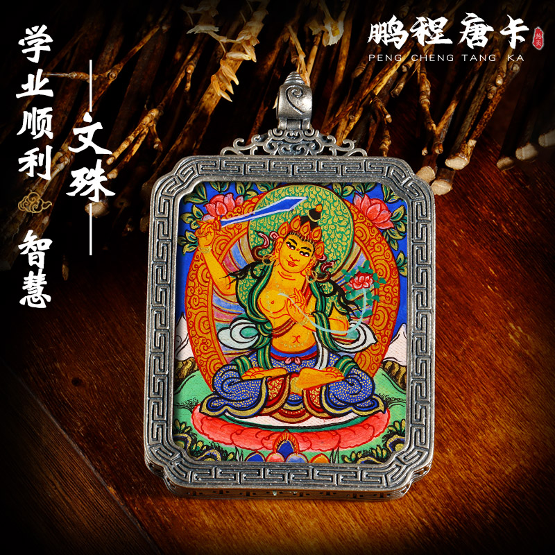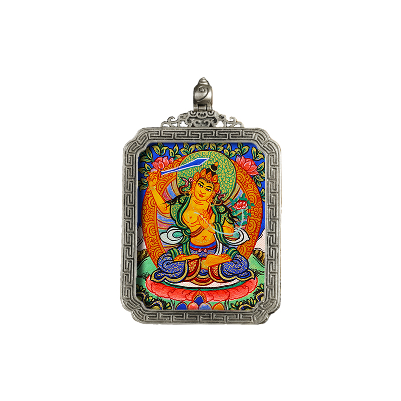 Pure Hand Painted Donka Pendant Vinjusri bodhisattva Buddha statue of the Buddha Buddha Patron Saint Patron Saint Pure Silver Gwu Box Buddha Pendant Pendant