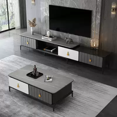 2021 New light luxury Rock board TV cabinet tea table combination modern simple small apartment solid wood telescopic storage cabinet