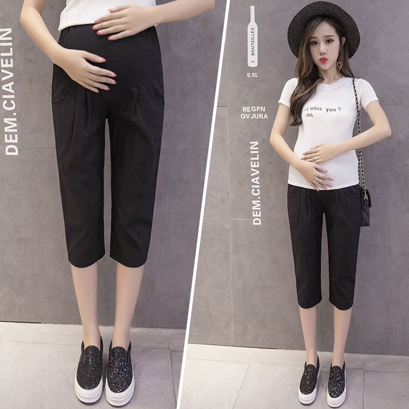 Pregnant women's summer cotton linen seven pants in summer pure cotton loose pants with small, eight thin belly pants