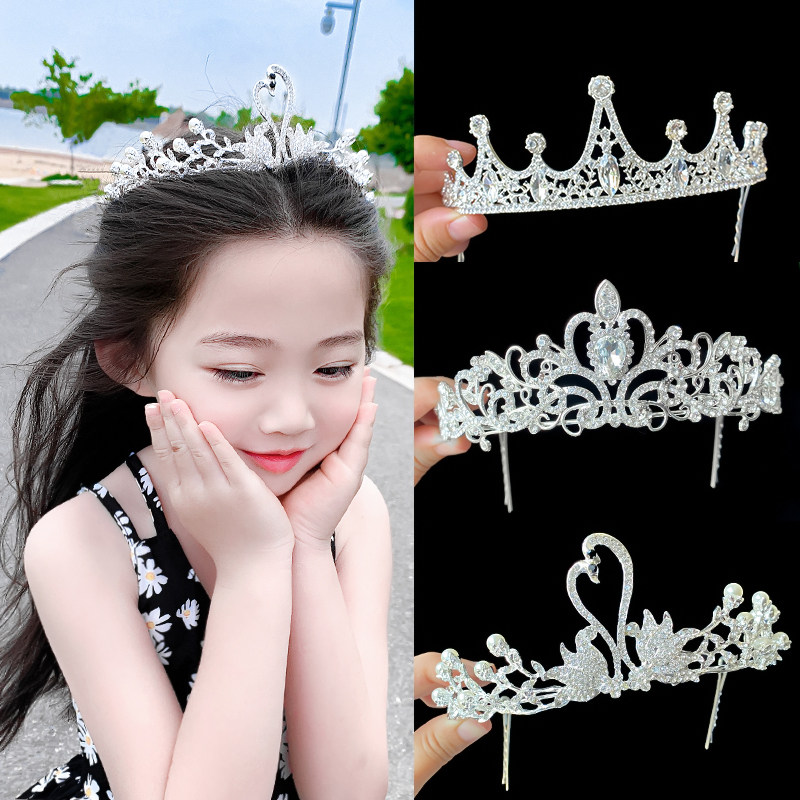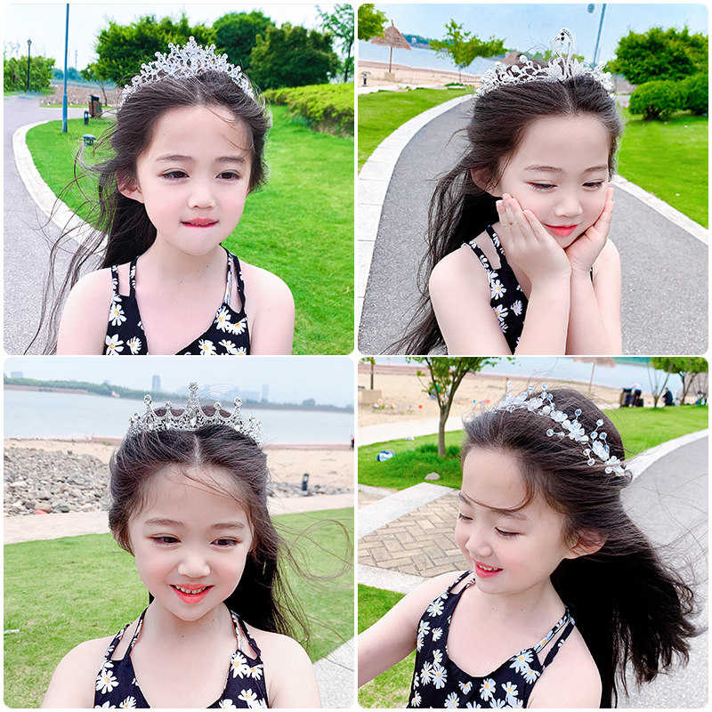 Children's Water Drilling Crown Head Accessories Princess Crown Hairdress Korean Girls Show Tip for Birthday Gift Hairdress