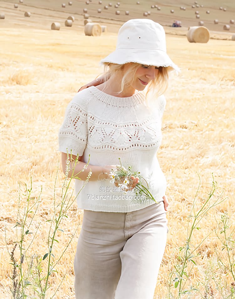 (Textured Knitting Workshop) Moon White Female Lace Round Shoulder Long Sleeve Open Sleeve Cardiovert Sweater Needle Electronic Text Diagrams
