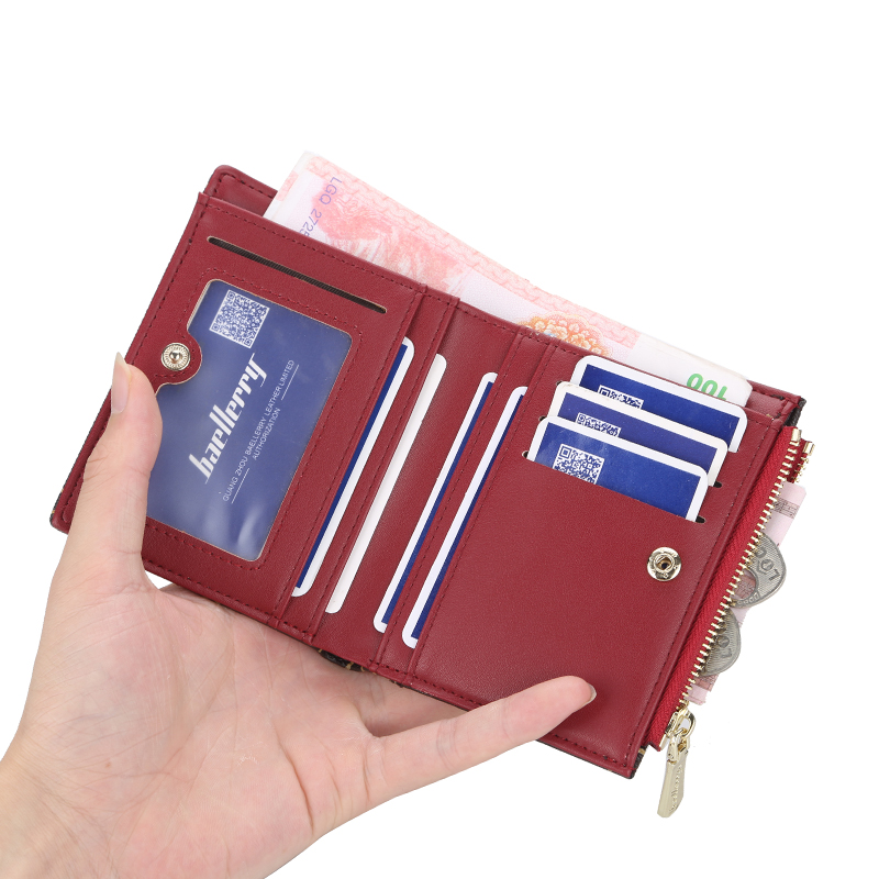 2021 new women's short wallet Korean printing multi-card position snap coin purse fashion zipper card bag female