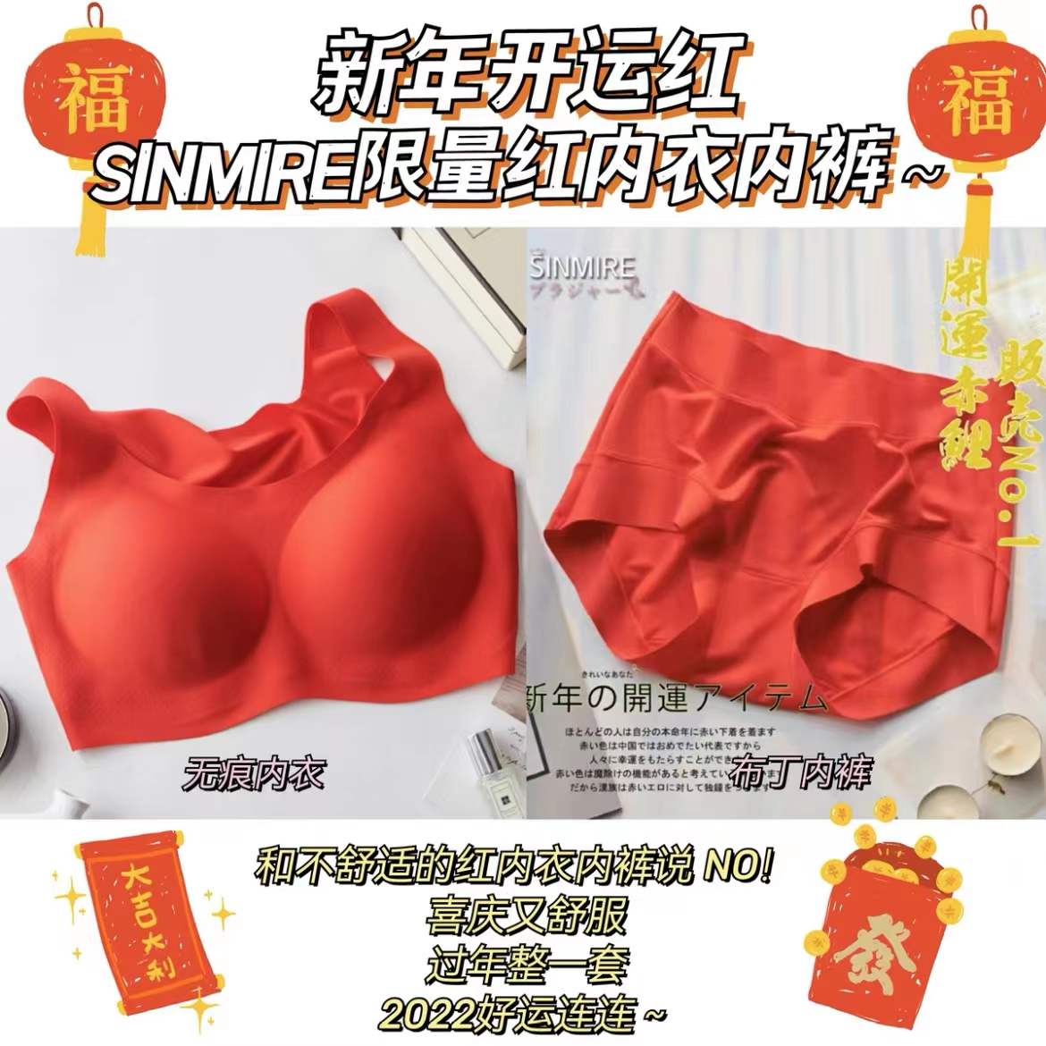 New Year's limited red ▲ SINMIRE limited red seamless pudding underwear underwear is comfortable and breathable for the year of life