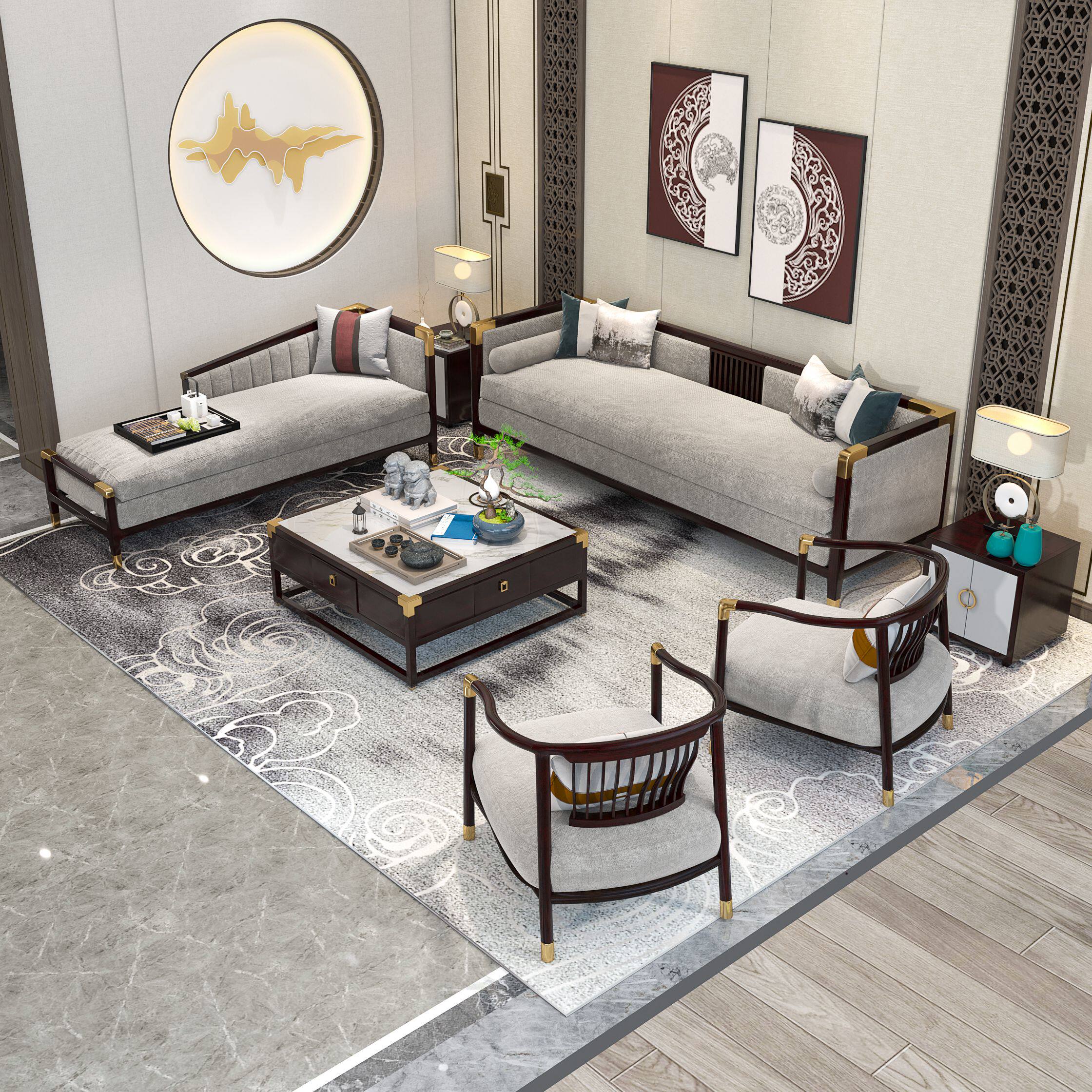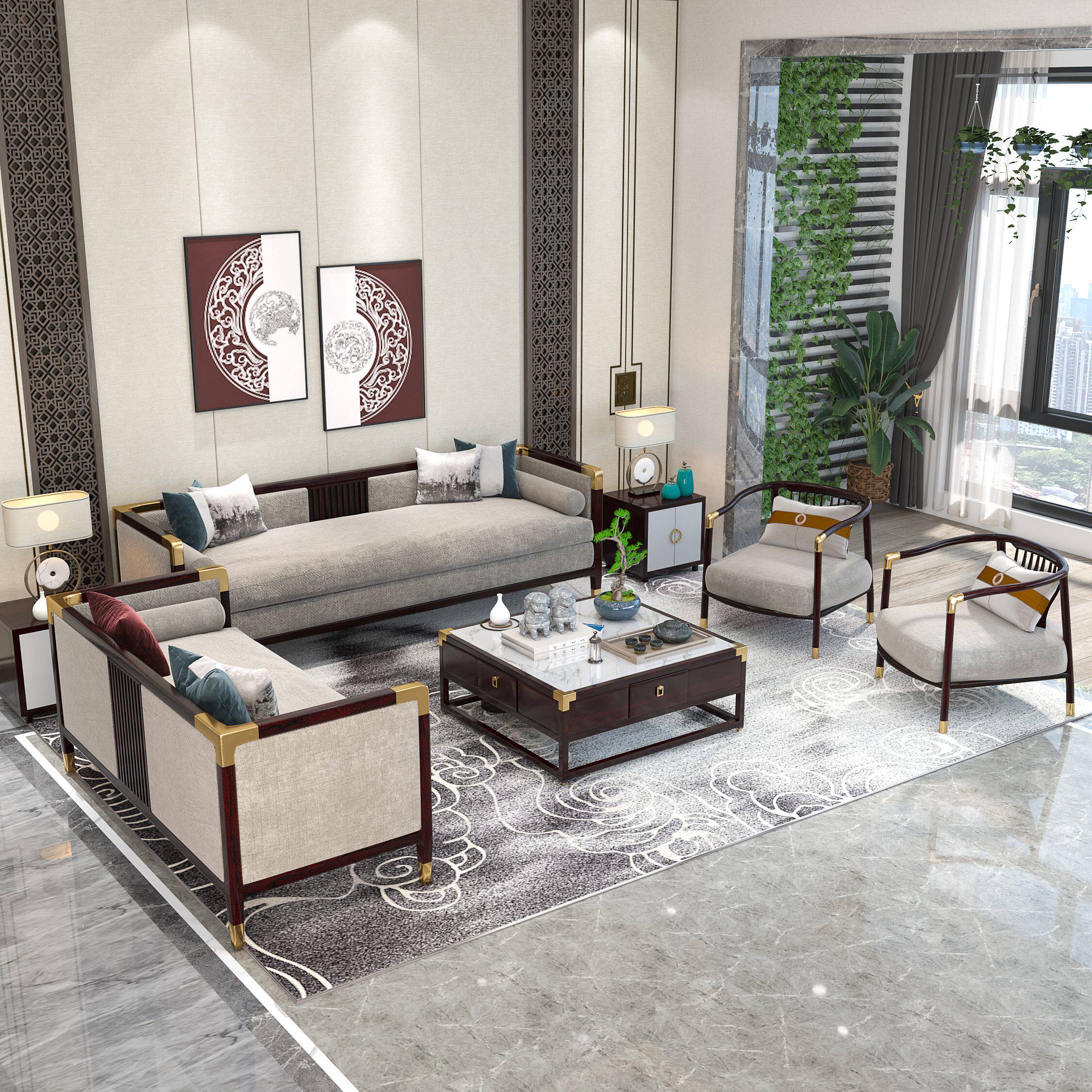 Single sofa chair two-seat sofa chair three-person sofa chair coffee table chaise longue tv cabinet corner a few single chairs*2 double triple tv cabinet corner table*2 color size customization