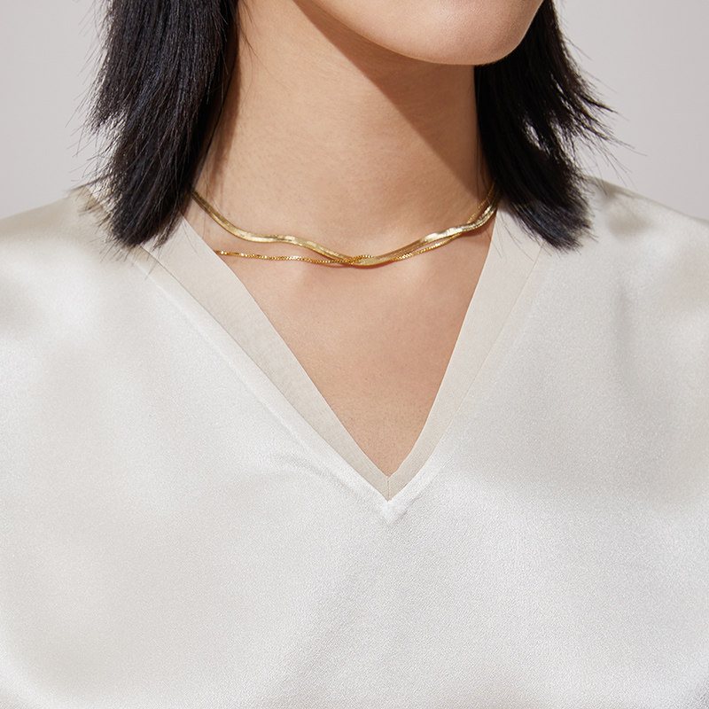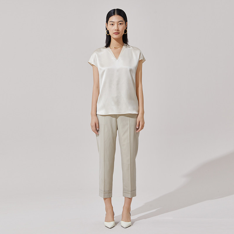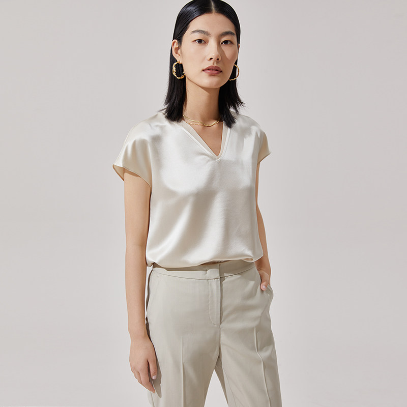(Spot) The same style Gloria in the mall new V-neck silk top 114L3B50B