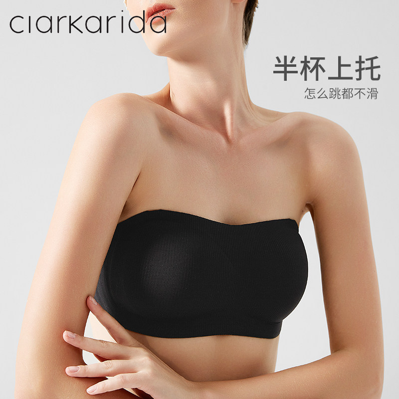 ClarKarida strapless underwear women's summer small chest gathered bra anti-slip invisible chest thin section
