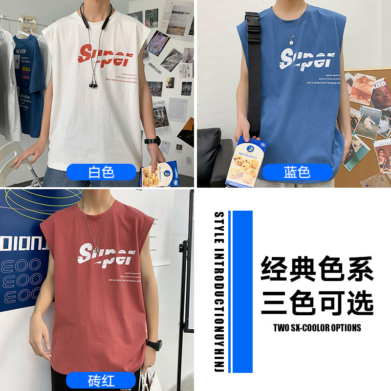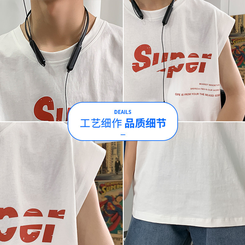 Short Sleeve T-shirt Men Summer Ice Silk Harbor Wind Sleeveless Men's Clothing 2022 New Vest Tide Cards Outside of Camshoulder clothes