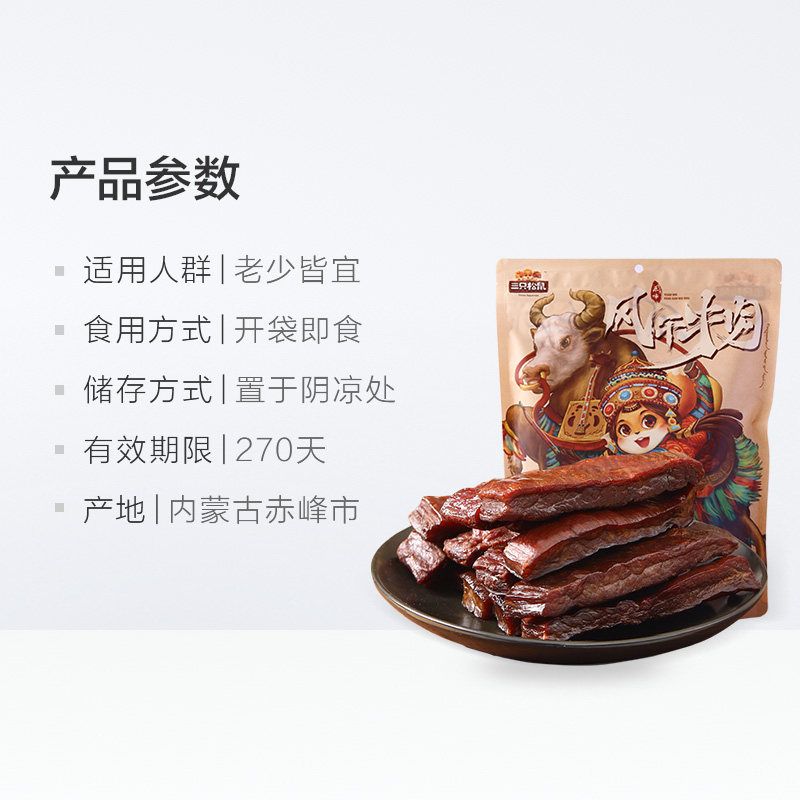 Three squirrels air-dried beef 500g*1 bag of hand-torn beef cooked food specialty leisure snacks net red snacks
