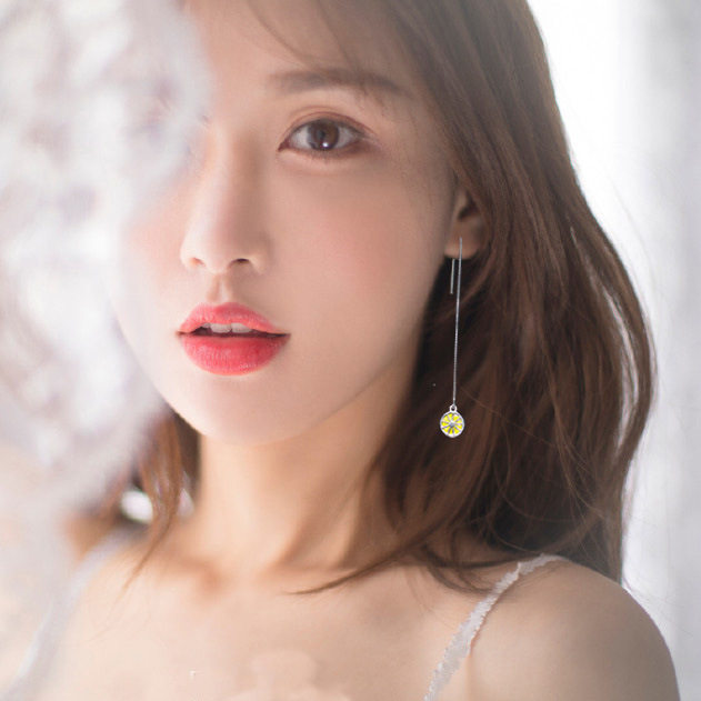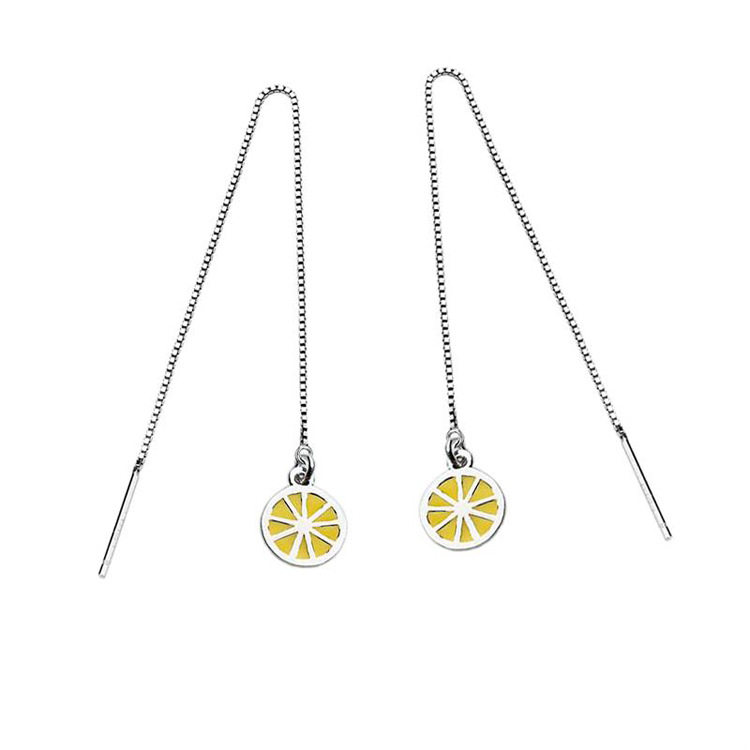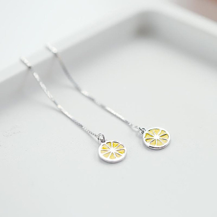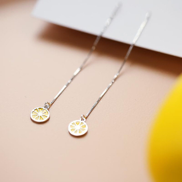 Pure silver earrings 925 silver temperament fresh lemon ear line lukewarm wind female Han version Fashion Brief Ear Ornaments-Taobao