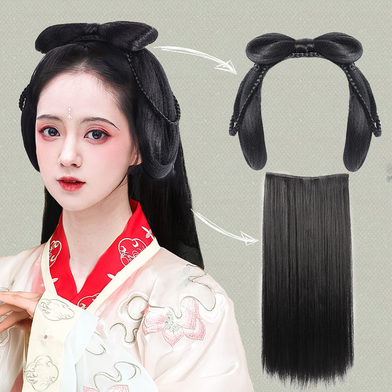 Hanfu wig Ancient style one-piece hair bag bun Lazy hairstyle Full set of Ming and Tang style modeling female pad hair novice