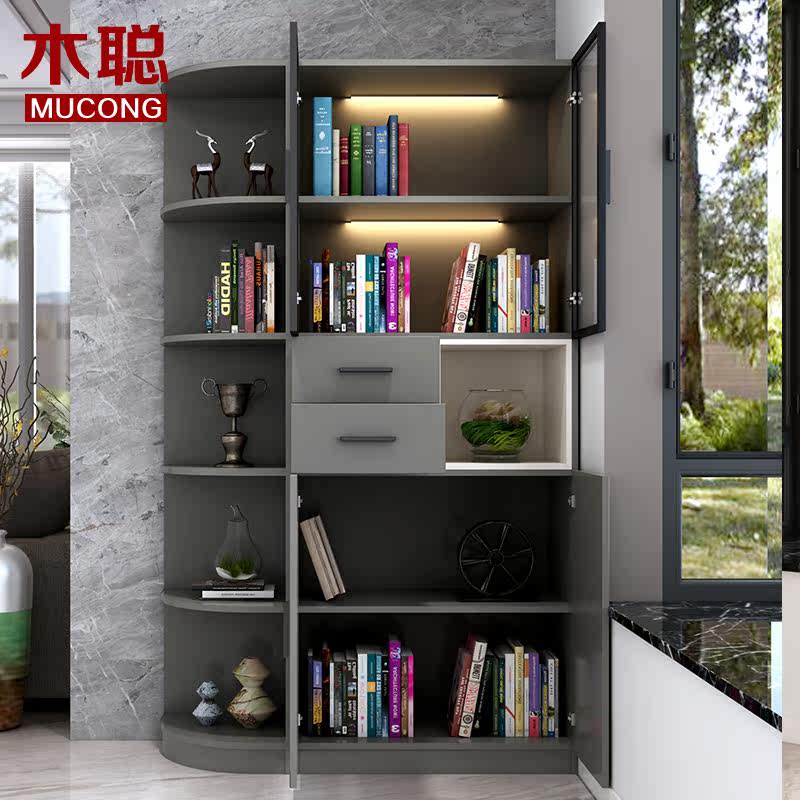Wood Con Corner Bookshelf Landing Living-room Corner Cabinet Wall Corner Cabinet Rack Corner Cabinet Bedroom Cramp Bookcase With Door