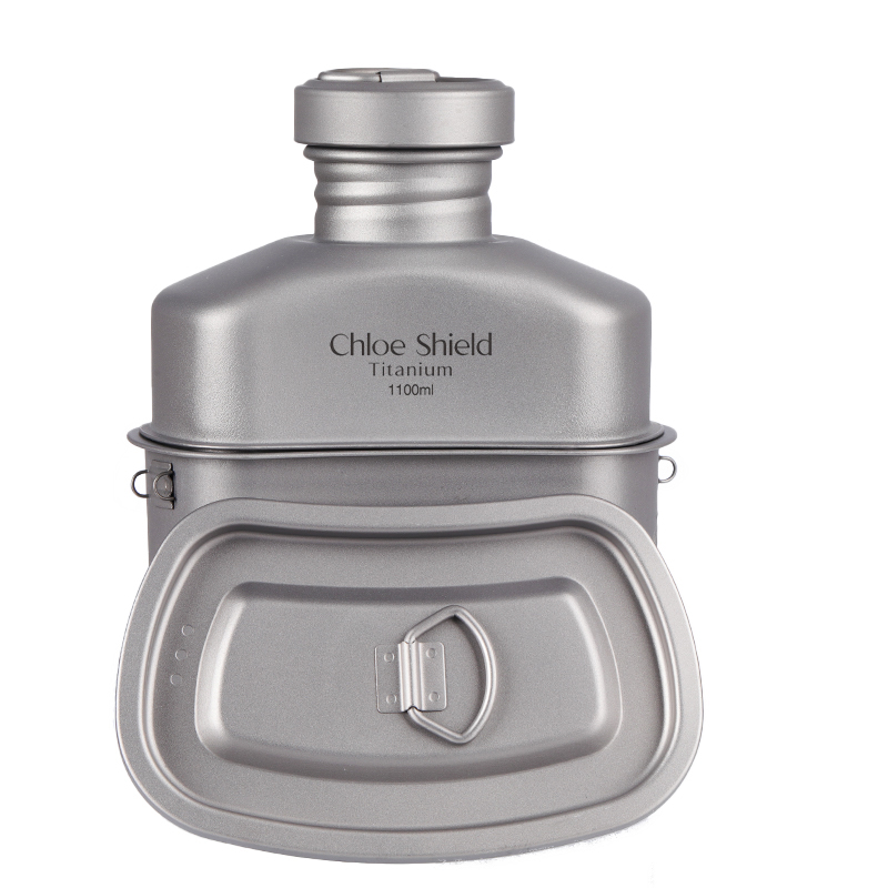 Koushield Outdoor Pure Titanium Large Capacity Kettle Folding Handle Lunch Box Stackable Suit Camping Mountaineering Wild Cooking portable packaging