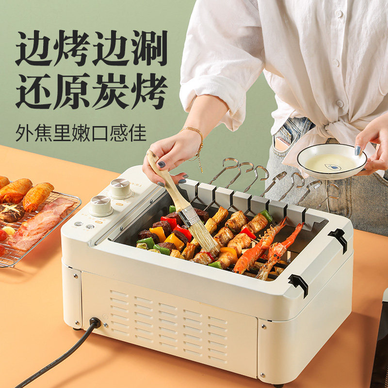 Sichuan Jian Kebab machine Barbecue machine Household automatic rotation multi-function indoor barbecue pot electric baking plate smoke-free barbecue stove