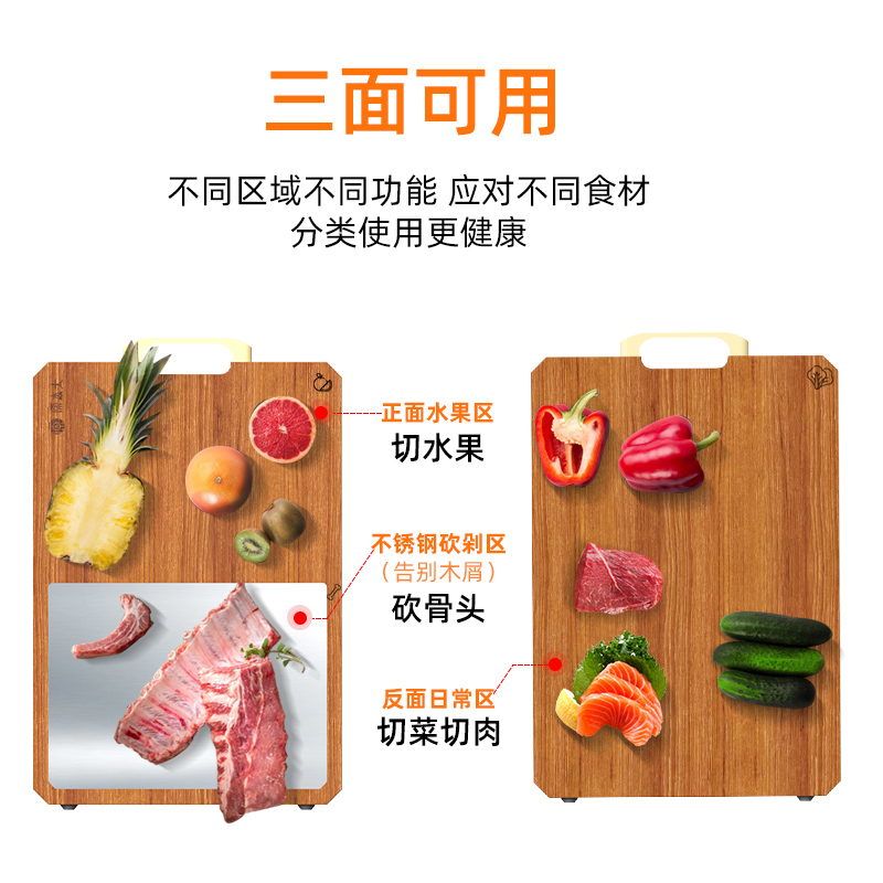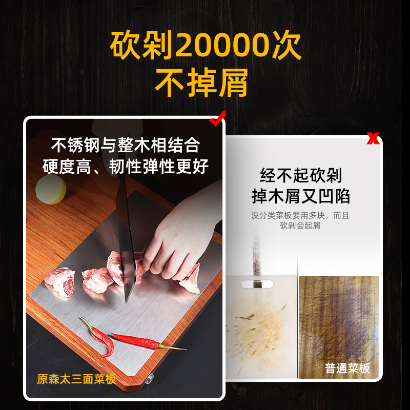 3 Face Stainless Steel Cutting Board Solid Wood Domestic Chopping Block Antibacterial mildew Thickened Large Cut Fruit Mucus Plate Kitchen Case Board