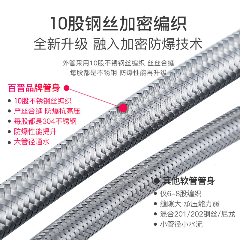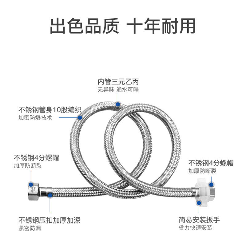 304 stainless steel 4 cold and hot high-pressure water inlet hose tap toilet water heater small kitchen treasure explosion protection braided tube
