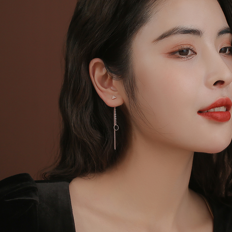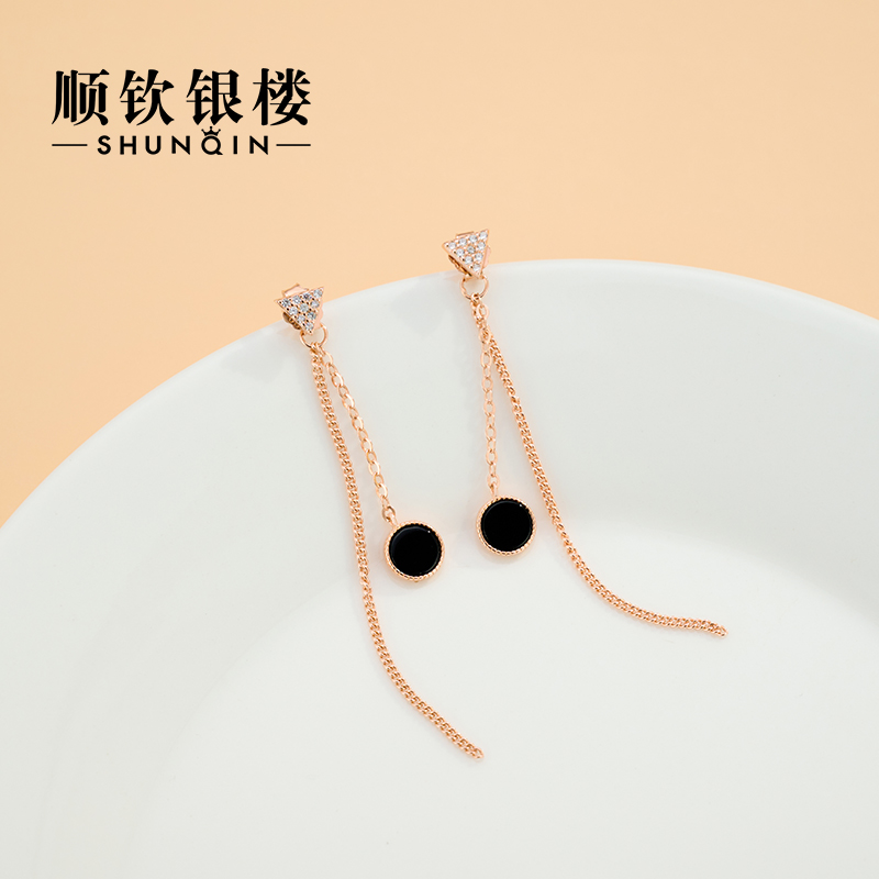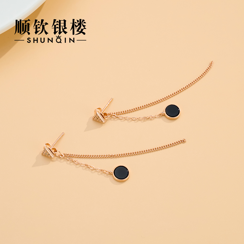 Cischon Silver Floor S925 Pure Silver Earrings Accessories Black Flow Suearrings Woman Ins Wind Briefs about small and delicate 21 years new