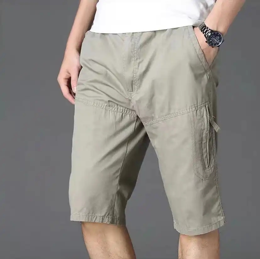 Wanshichang Pangfu Clothing Store Summer Shorts Cotton Men's Casual Pants Pockets Comfortable Breathable Workwear Cropped Pants