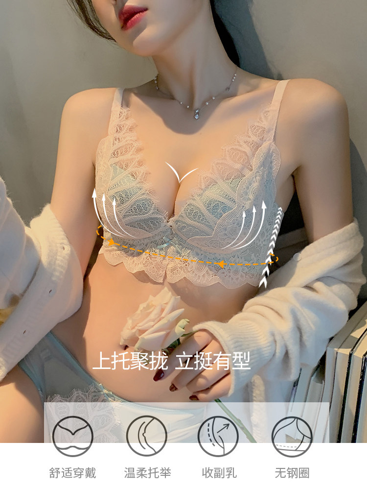 Sexy lace lingerie women's small breasts gathered to show large no steel ring to receive auxiliary breasts adjustment type summer thin underwear set IB