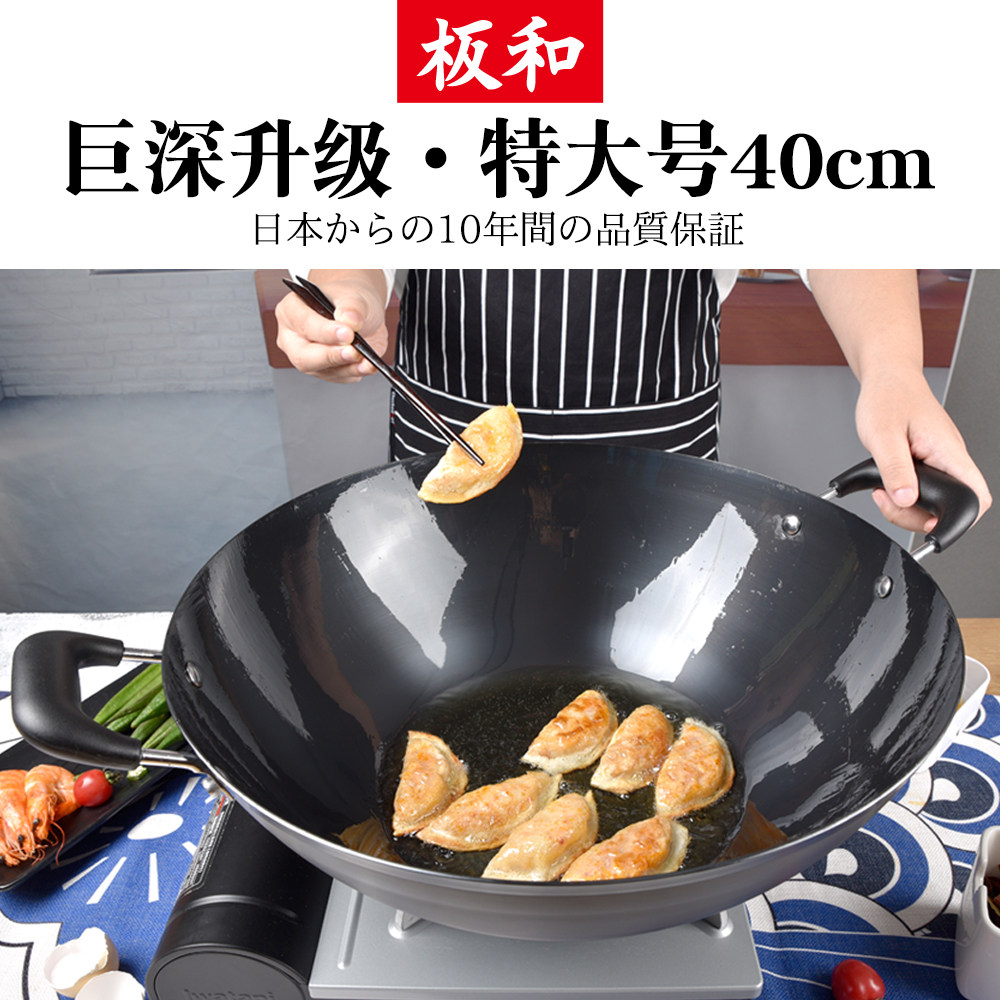 40cm deep iron pot frying pan binaural old-fashioned uncoated large frying pan flat bottom induction cooker coal gas household