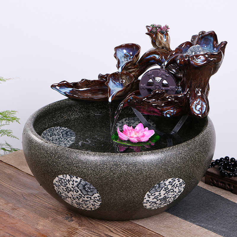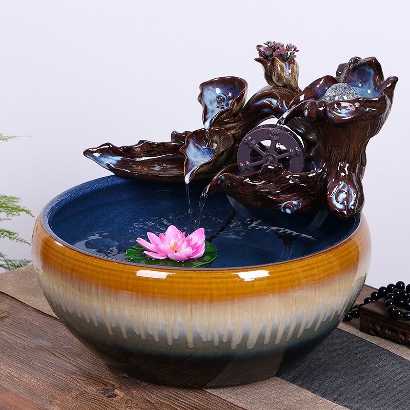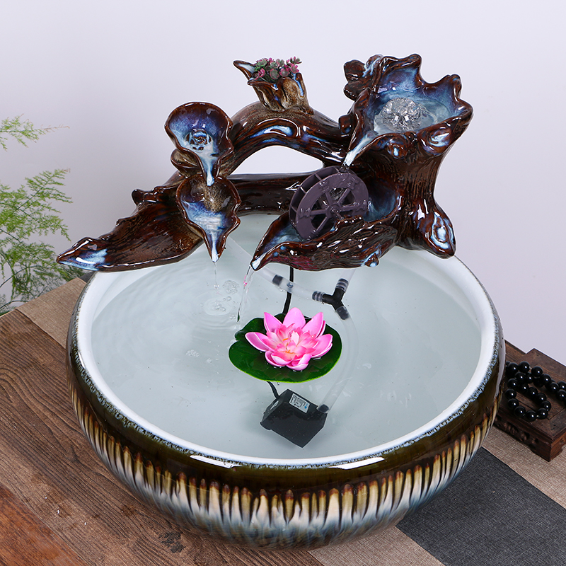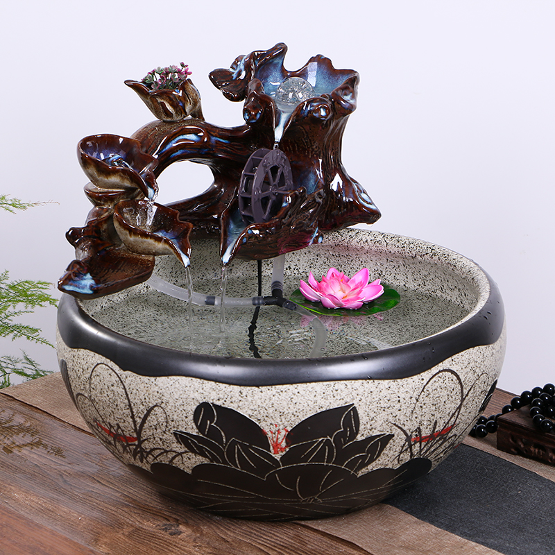 Jingdezhen ceramic fish tank running water home fountain living room large bowl lotus water lily turtle fish pot landscaping ornaments - Taobao