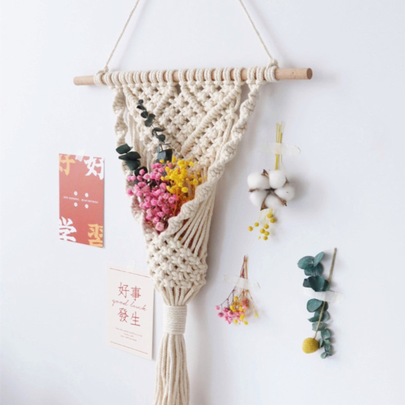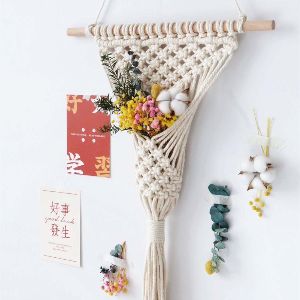 "Shuimei Shop"Flower basket tapestry Nordic bedroom wall decoration ins woven handmade diy material package Birthday gift