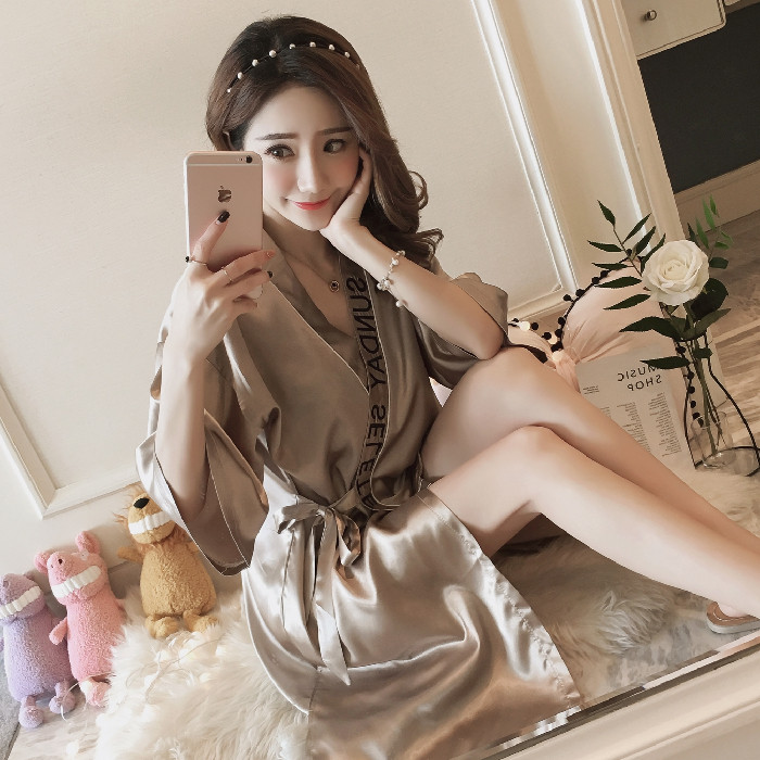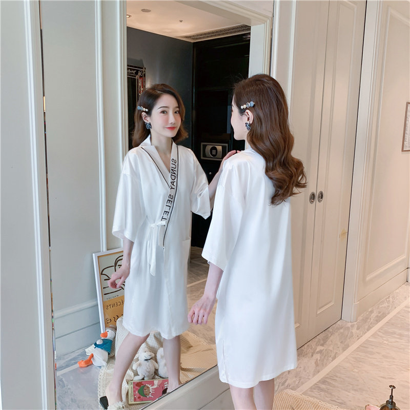 Sleepwear Woman 2022 New Summer Ice Silk Hotel Sleeping Robe Summer Style Sleeping Dress Summer Style Pyjamas in the middle of a long version of the home