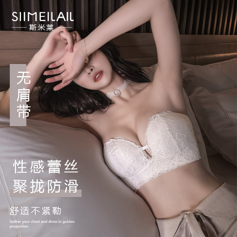 Smilai strapless bra small chest gathered thin summer beauty back bra bandeau no rimless invisible underwear women