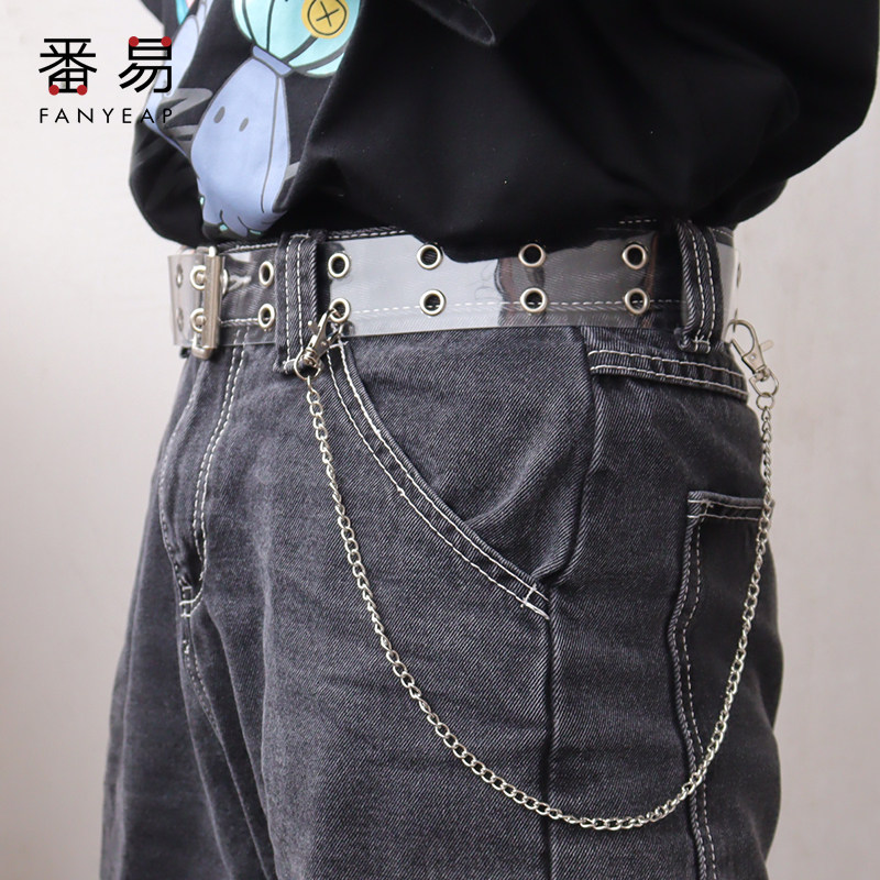 Full transparent belt female summer love round button in wind skirt decorated porous PVC plastic belt bandwidth