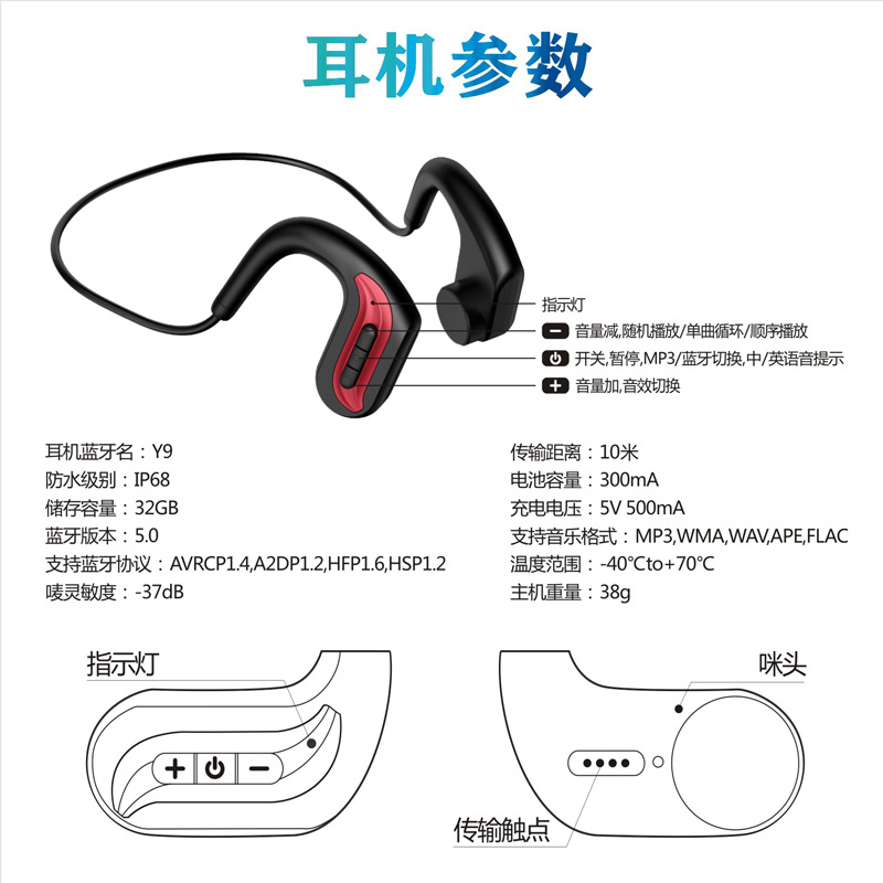 Diving Special Headphones Swimming Training Bone Conduction Wireless Bluetooth Underwater Waterproof Sports Headphones Self-memory Storage