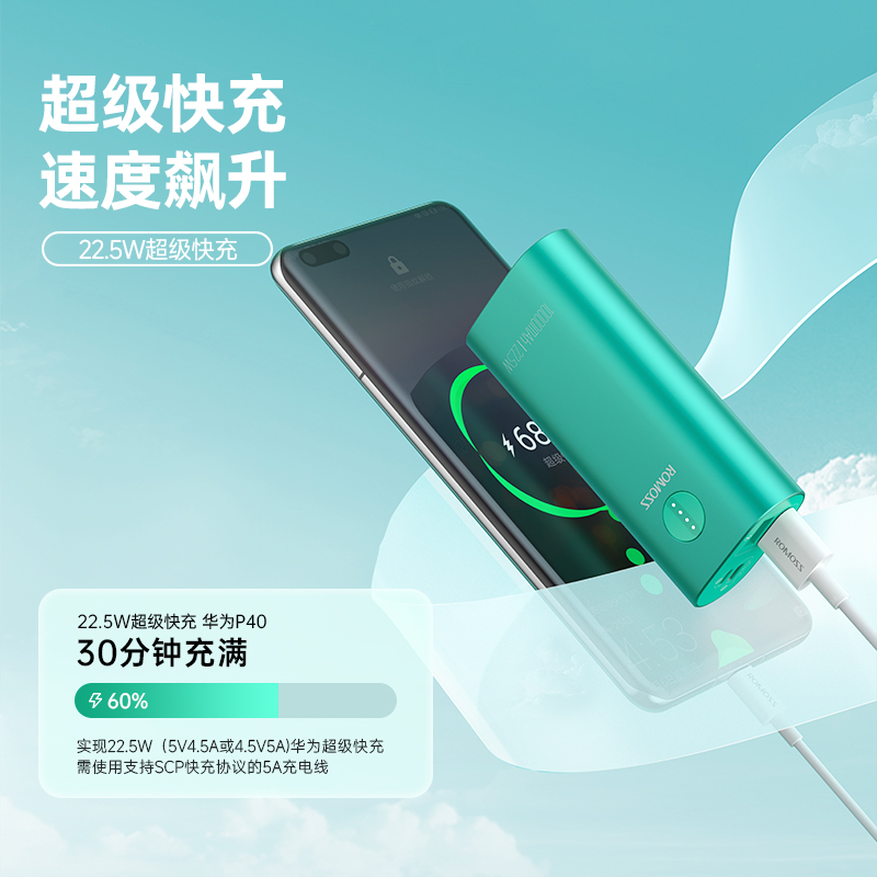 ROMOSS Roman Shicharging Bao 22 5W Super fast charging 18W bidirectional flash charge small portable 10000 mAh time mobile power suitable for Xiaomi oppo Huawei vibe apple