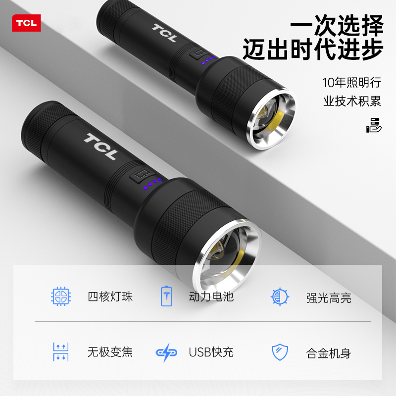 TCL flashlight charging outdoor ultra-bright remote zoom small portable emergency household ultra-long life