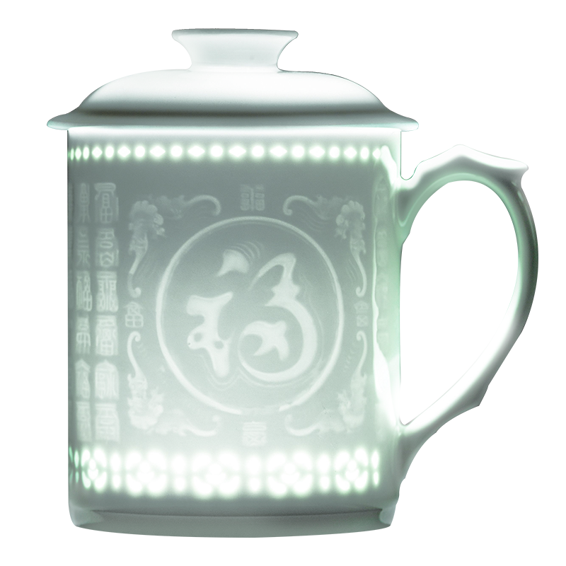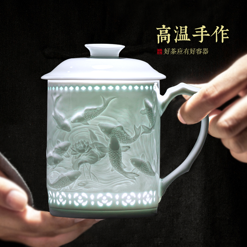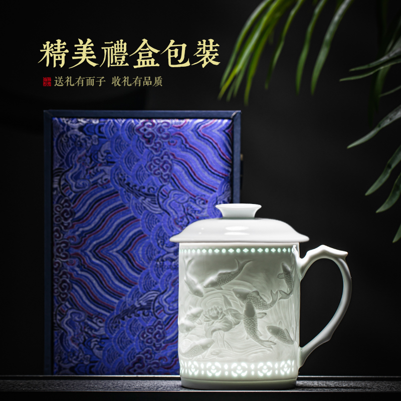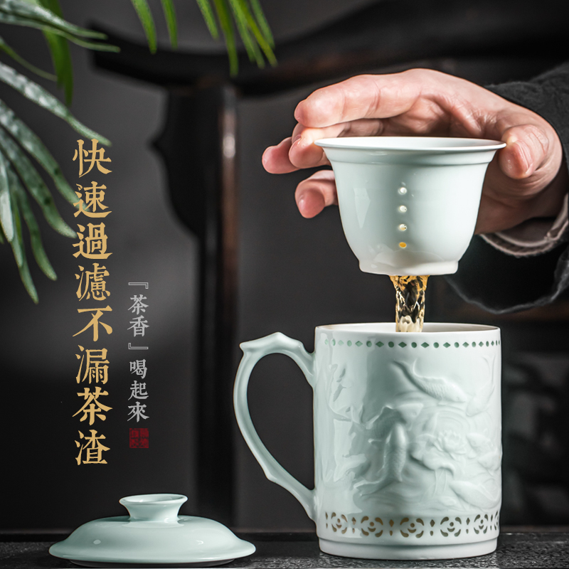 Jingdezhen carved Linglong office cup ceramic tea separation brew cup with filter with lid for personal use