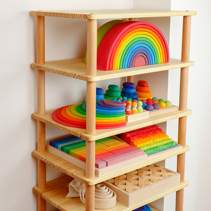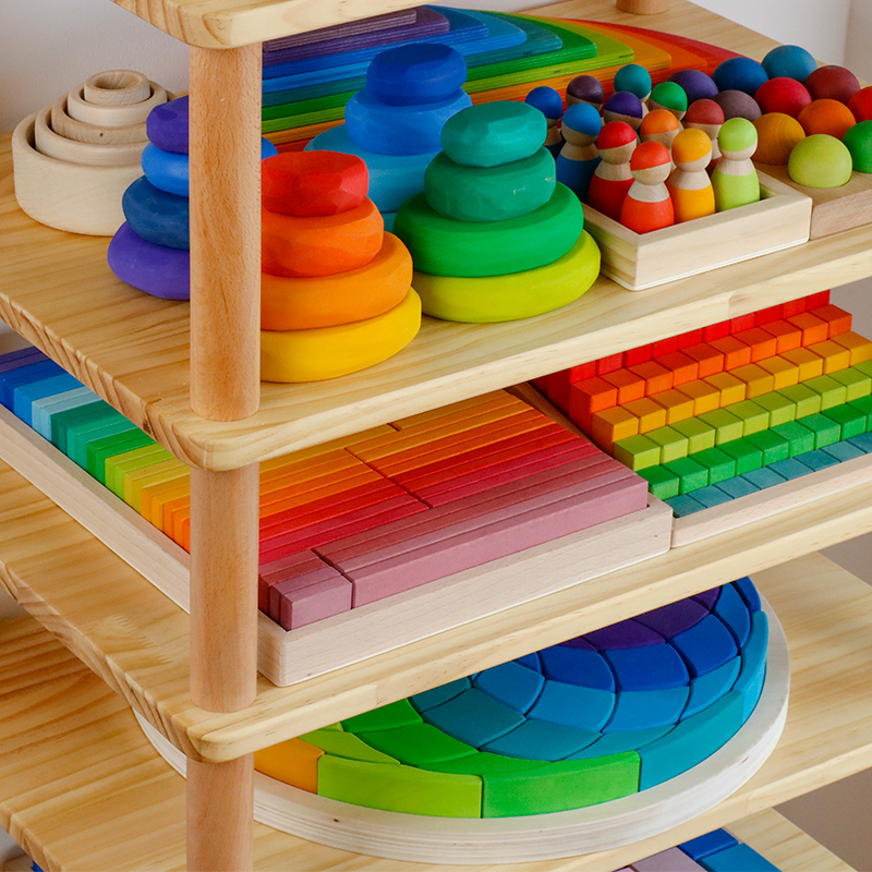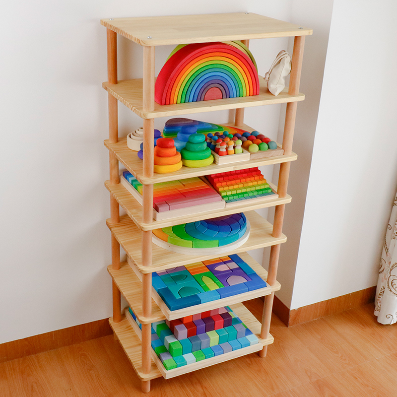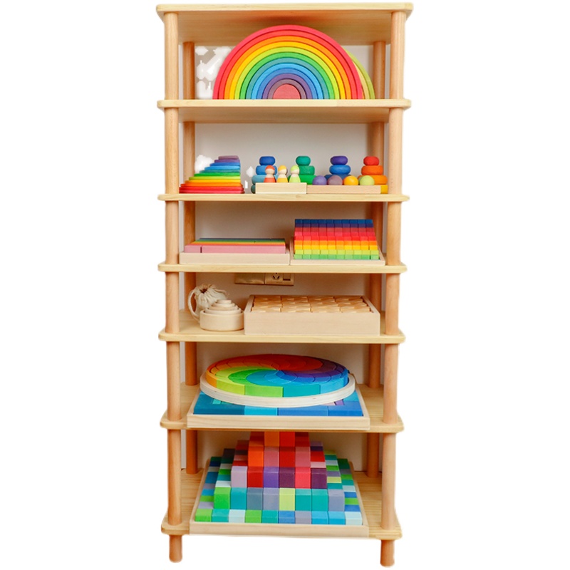 Rainbow Building Wood Containing Shelf Green Series Multilayer Landing Finishing Racks Children's Toys Display Cabinet Racks-Taobao