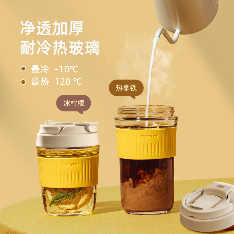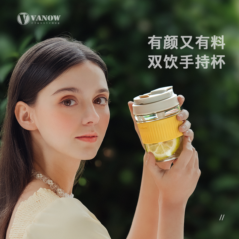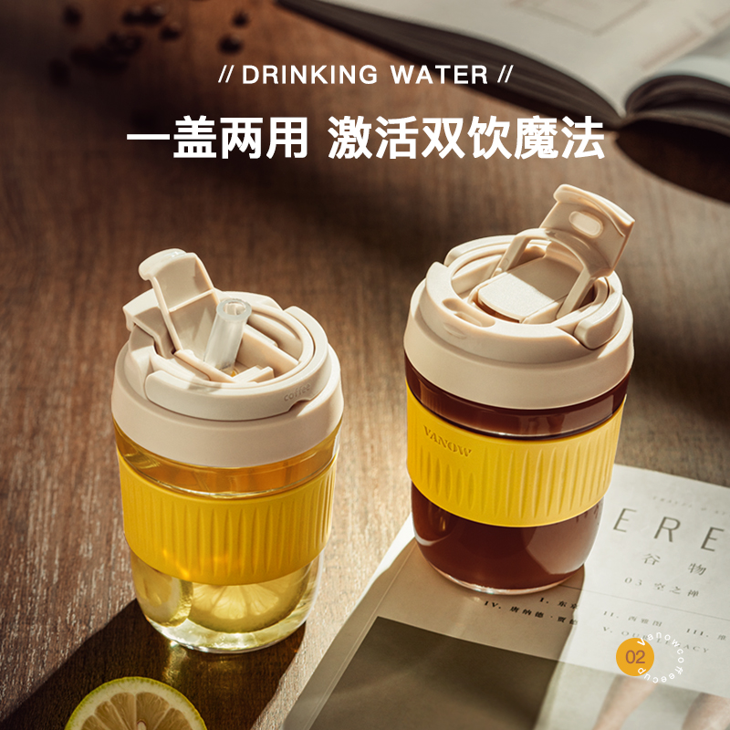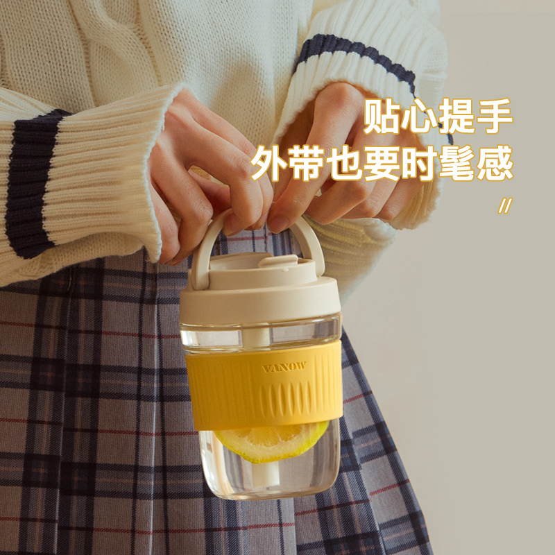 British Vanow glass water cup female summer with straw simple portable cute large capacity tea coffee cup
