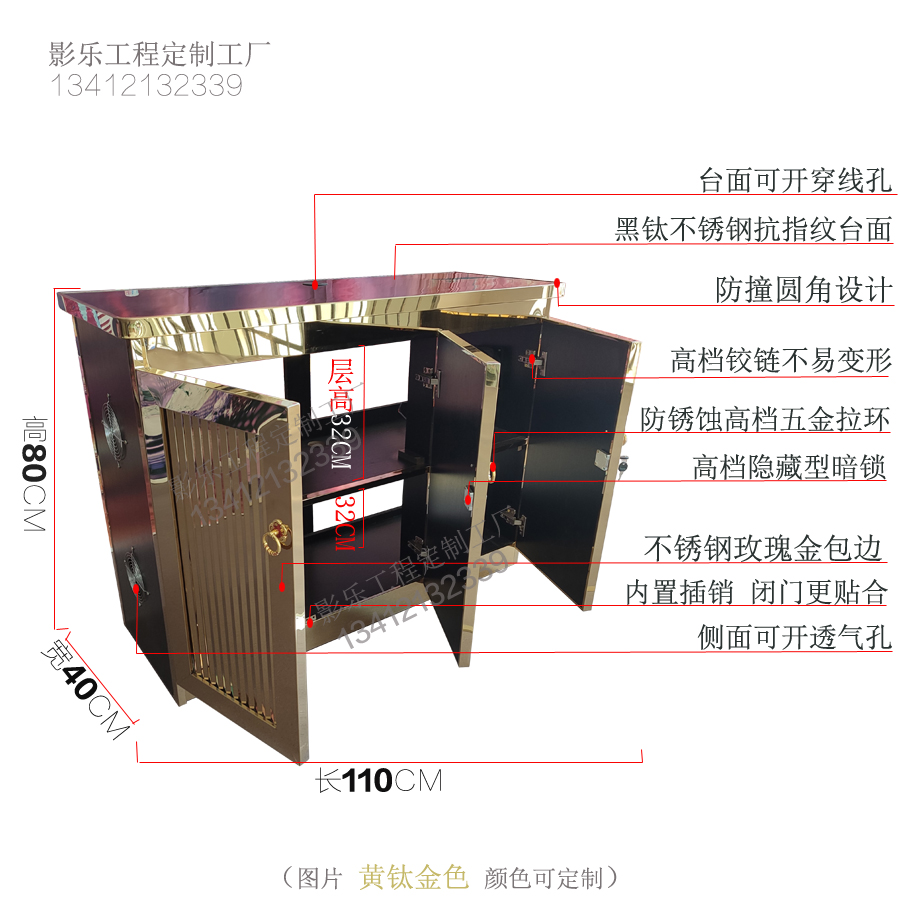 Stainless steel karaoke table cabinet ktv special amplifier cabinet karaoke audio-visual room professional audio equipment cabinet