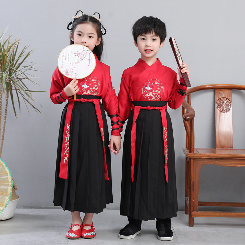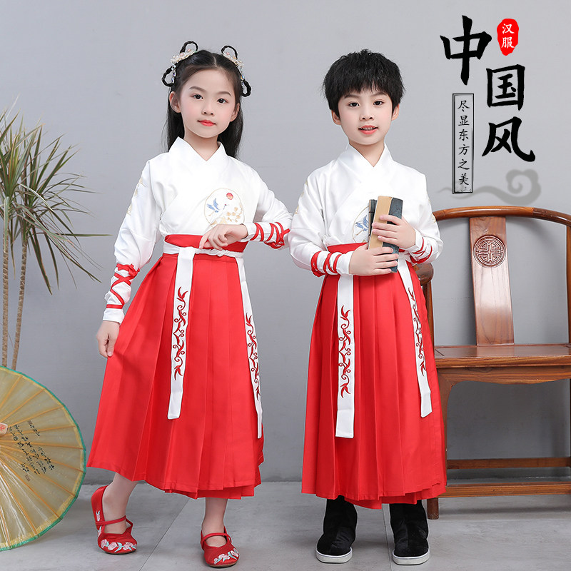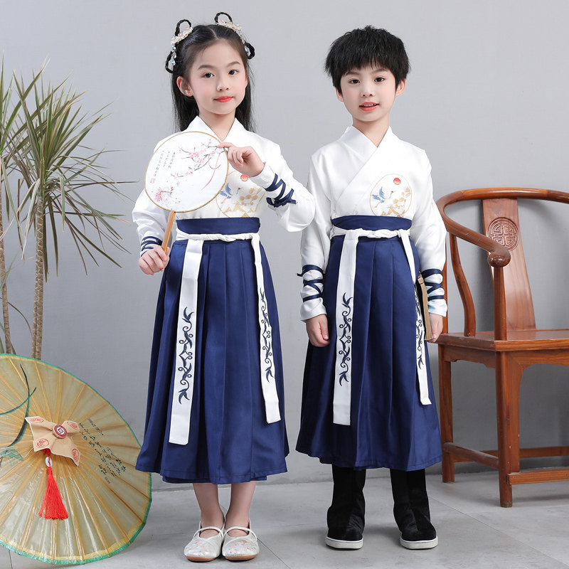 Children's ancient clothes Hanfu boys'country school uniforms girls' skirt Chinese style Chinese wind boys book children's clothes for three words after acting out