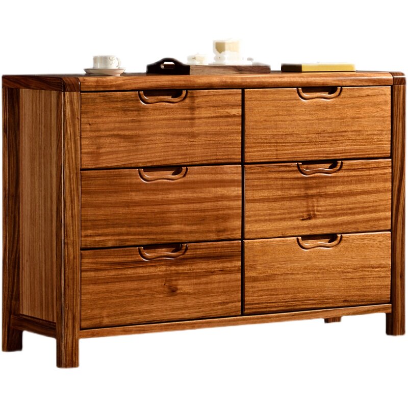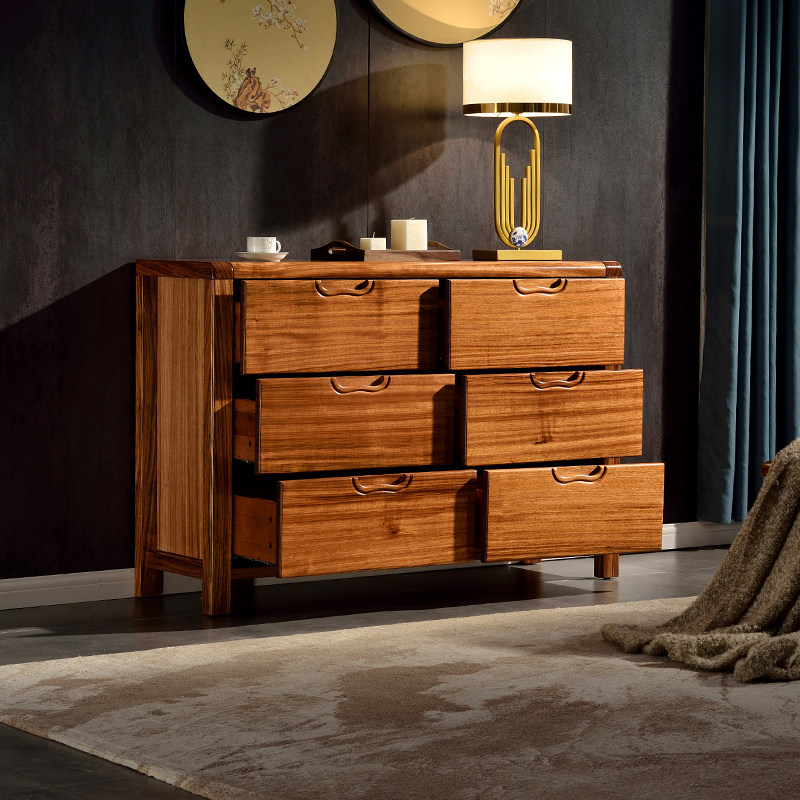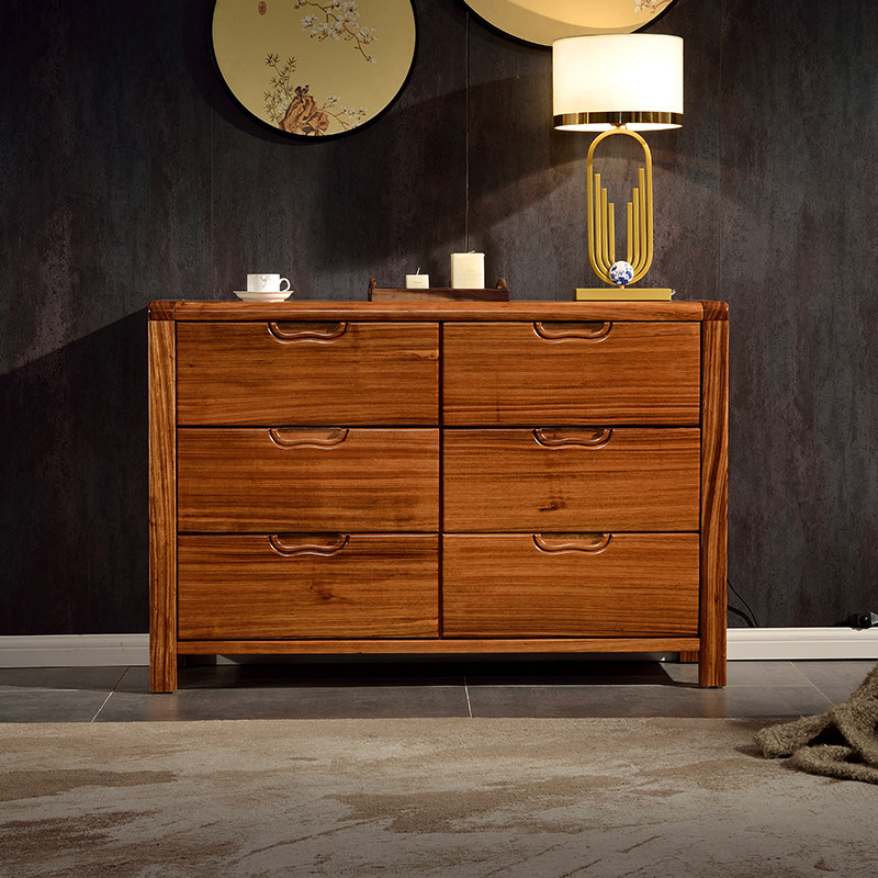 Modern Chinese all-solid wood bucket cabinet minimal Ugin wood six-cupboard bedroom living room multi-drawer storage cabinet locker